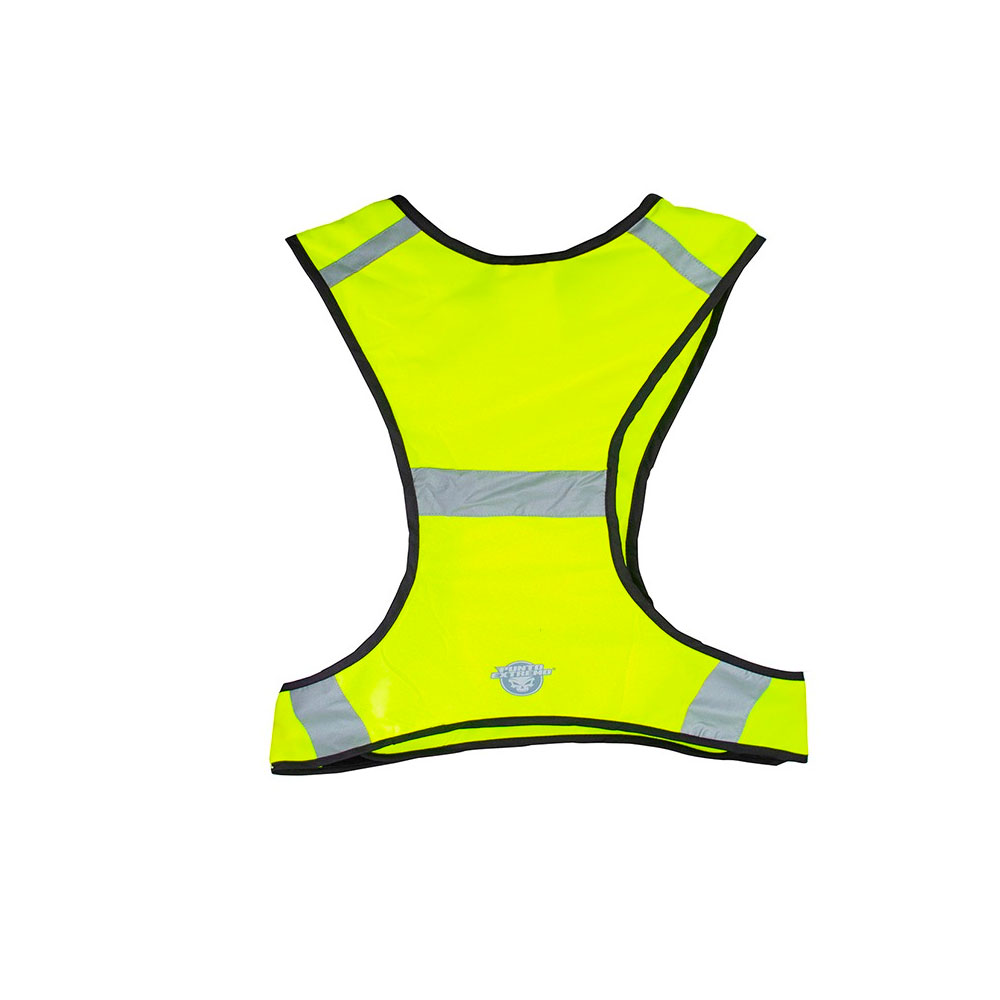 Chaleco reflejante con ajuste de velcros regulables, resistente al agua con cinta reflejante 3M. Incluye bolsillo para guardarlo.