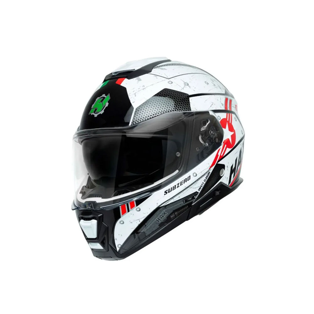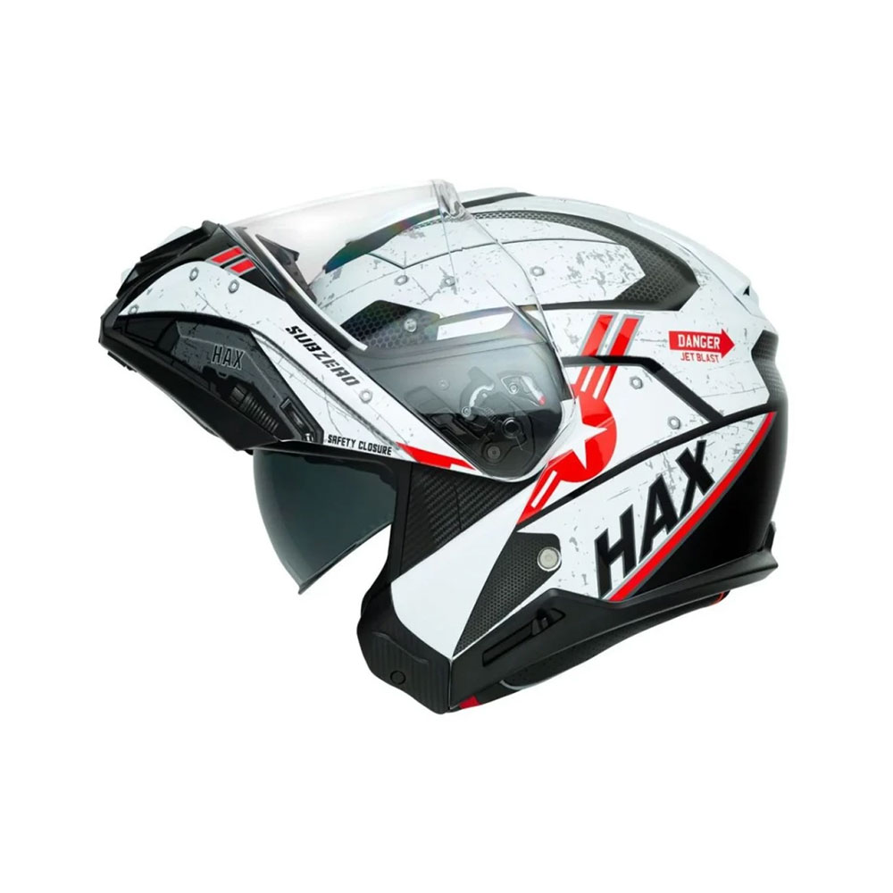 - Policarbonato de alta resistencia en visor y gafas.