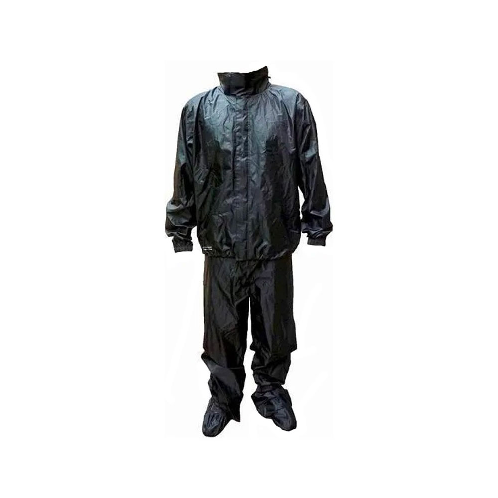 Campera con cierre más abrojo en el frente, capucha escondida en el cuello con cierre, cintura y muñecas regulables, detalles en material reflectivo + pantalón con cintura regulable con elásticos y botamangas regulables con abrojos. Hasta 5000 mm H2O